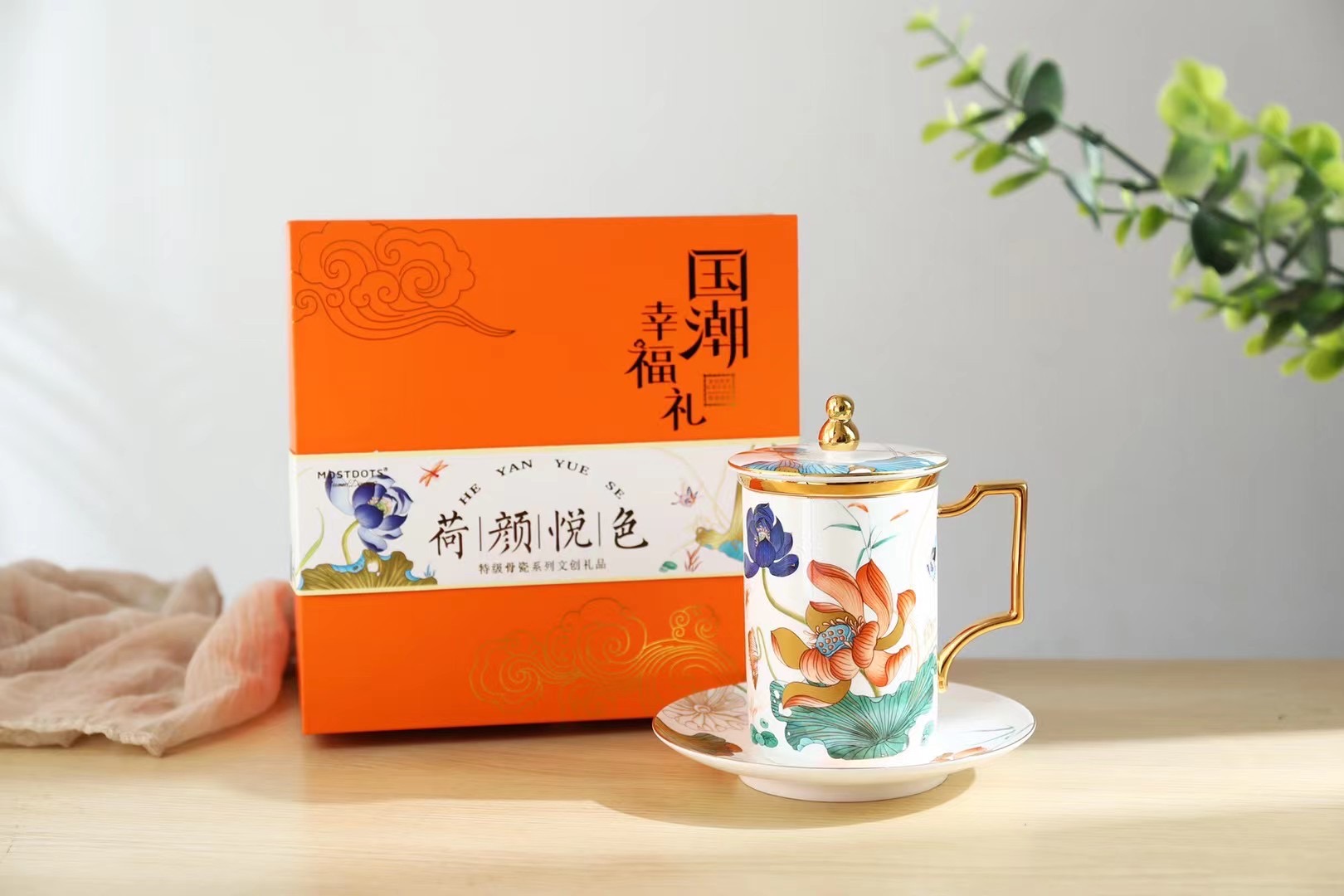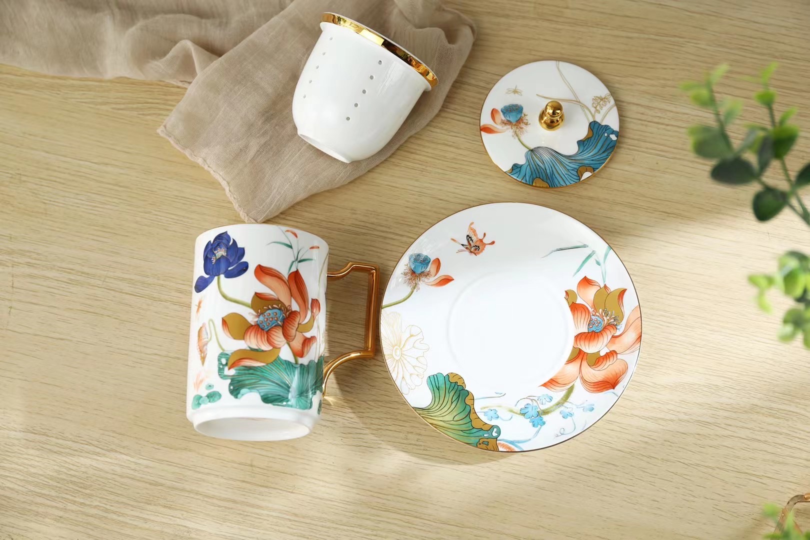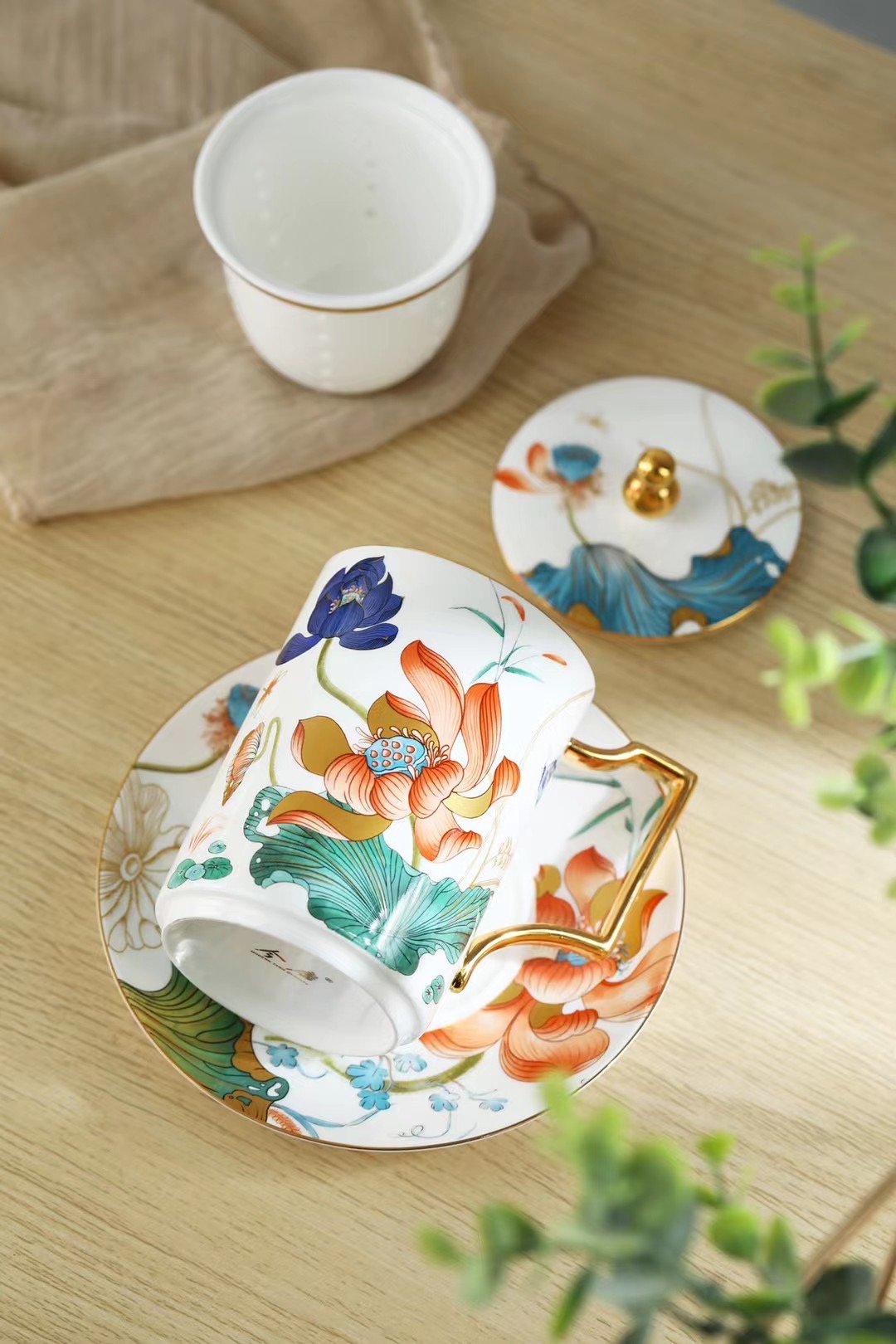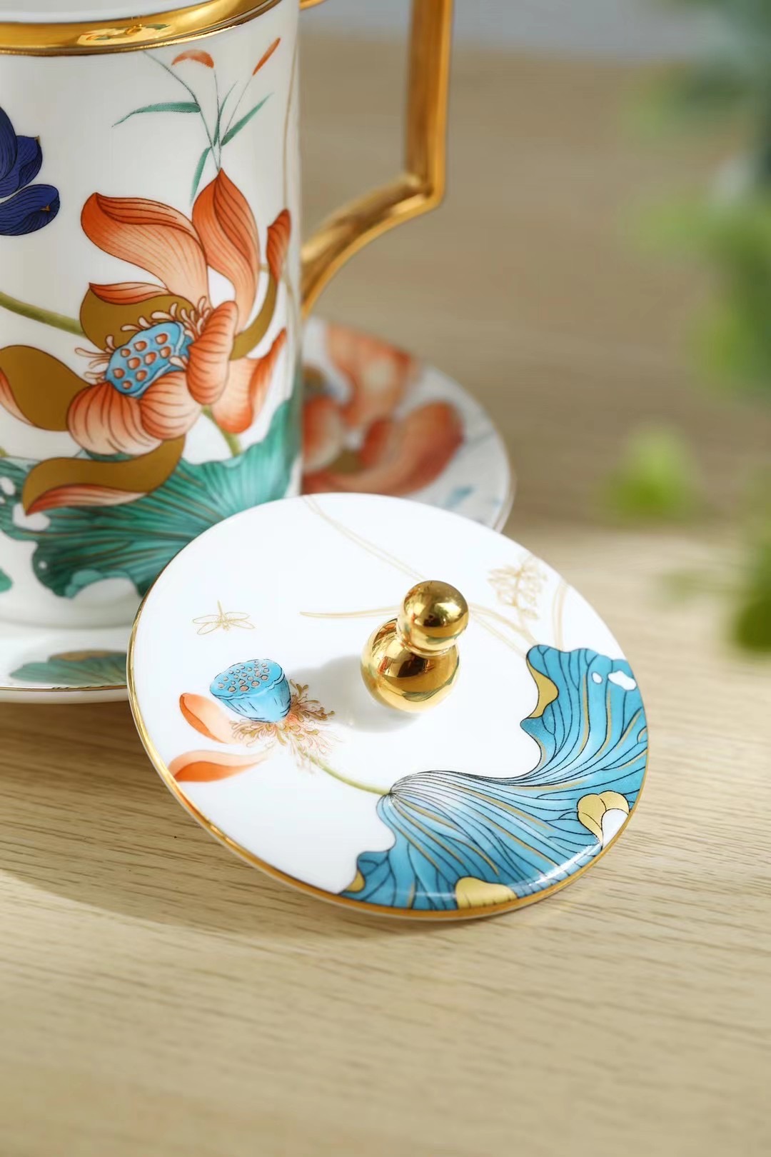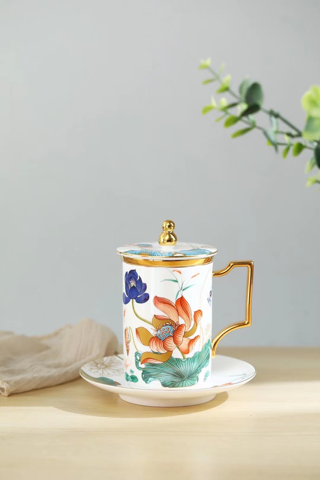 “荷顏悅色”陶瓷描金辦公杯