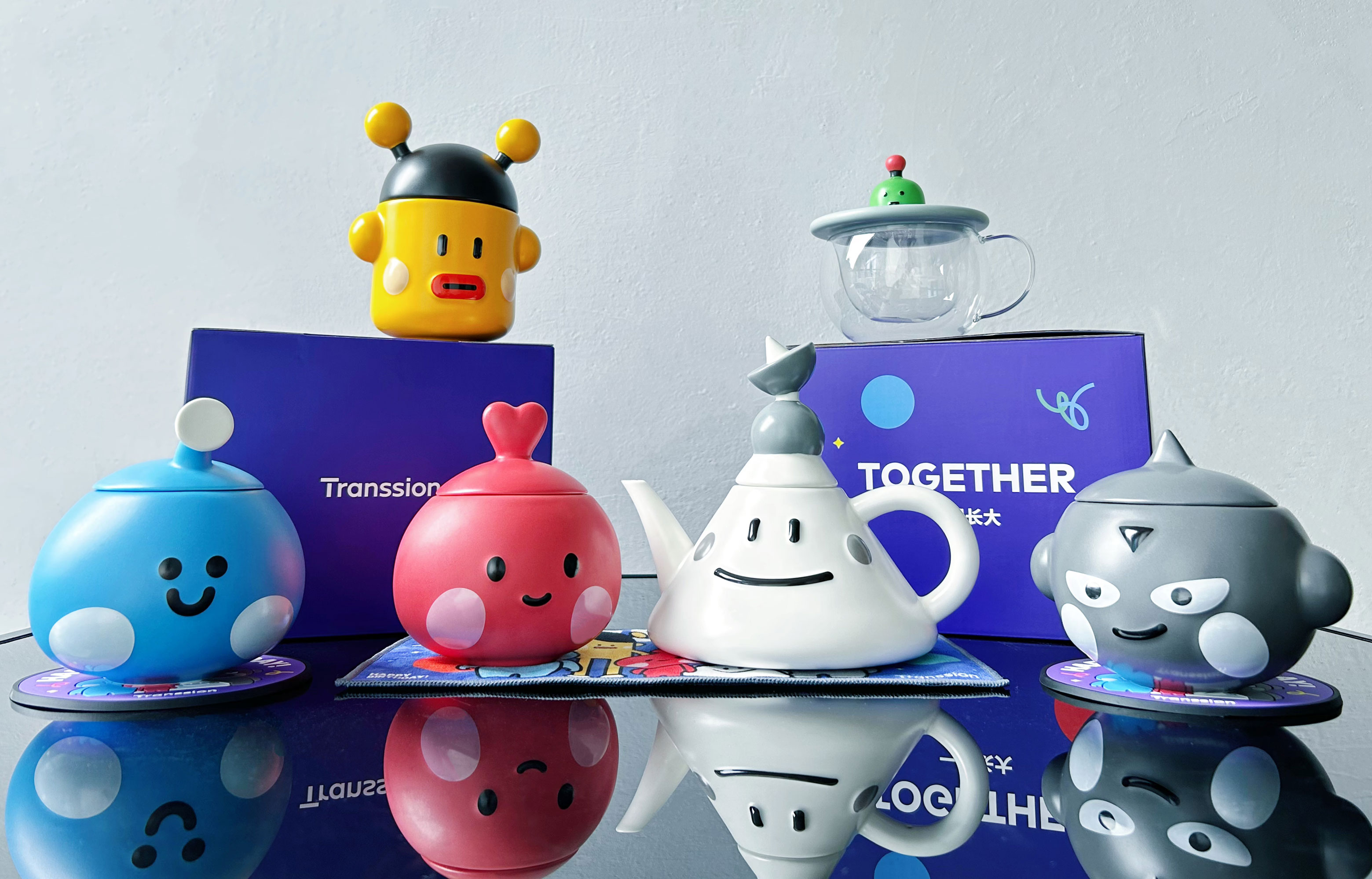 傳音控股以核心價值觀:用戶、尊重、開發(fā)、創(chuàng)新、共享、底線對應定制了五款陶瓷馬克杯和一款陶瓷茶壺。下面是我們的實拍圖: