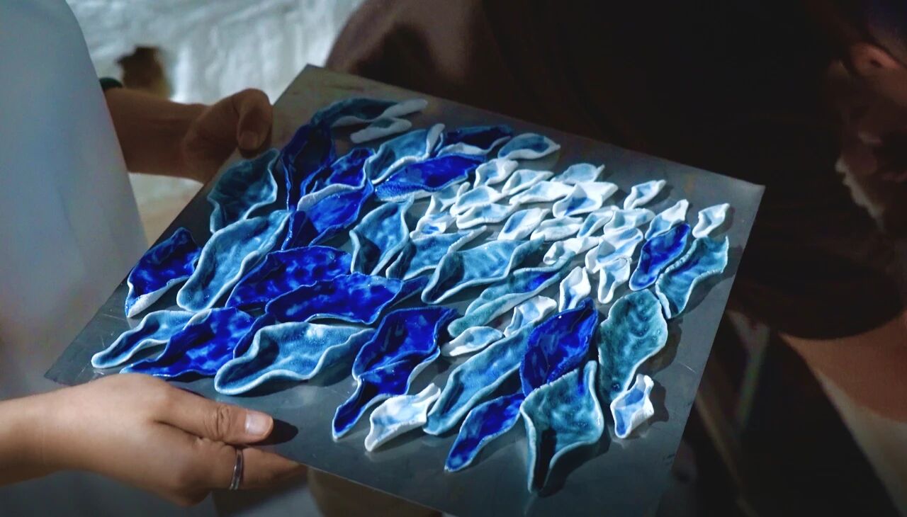 該工藝既保留了每片瓷獨特的手工質(zhì)感與肌理,又通過精密的結(jié)構(gòu)設(shè)計,確保了整體形態(tài)的連貫與結(jié)構(gòu)的穩(wěn)固。從而使“青暉”在宏觀上呈現(xiàn)渾然一體的完整氣韻,在微觀處富含細膩生動的陶瓷語言,達成整體與局部的和諧統(tǒng)一。