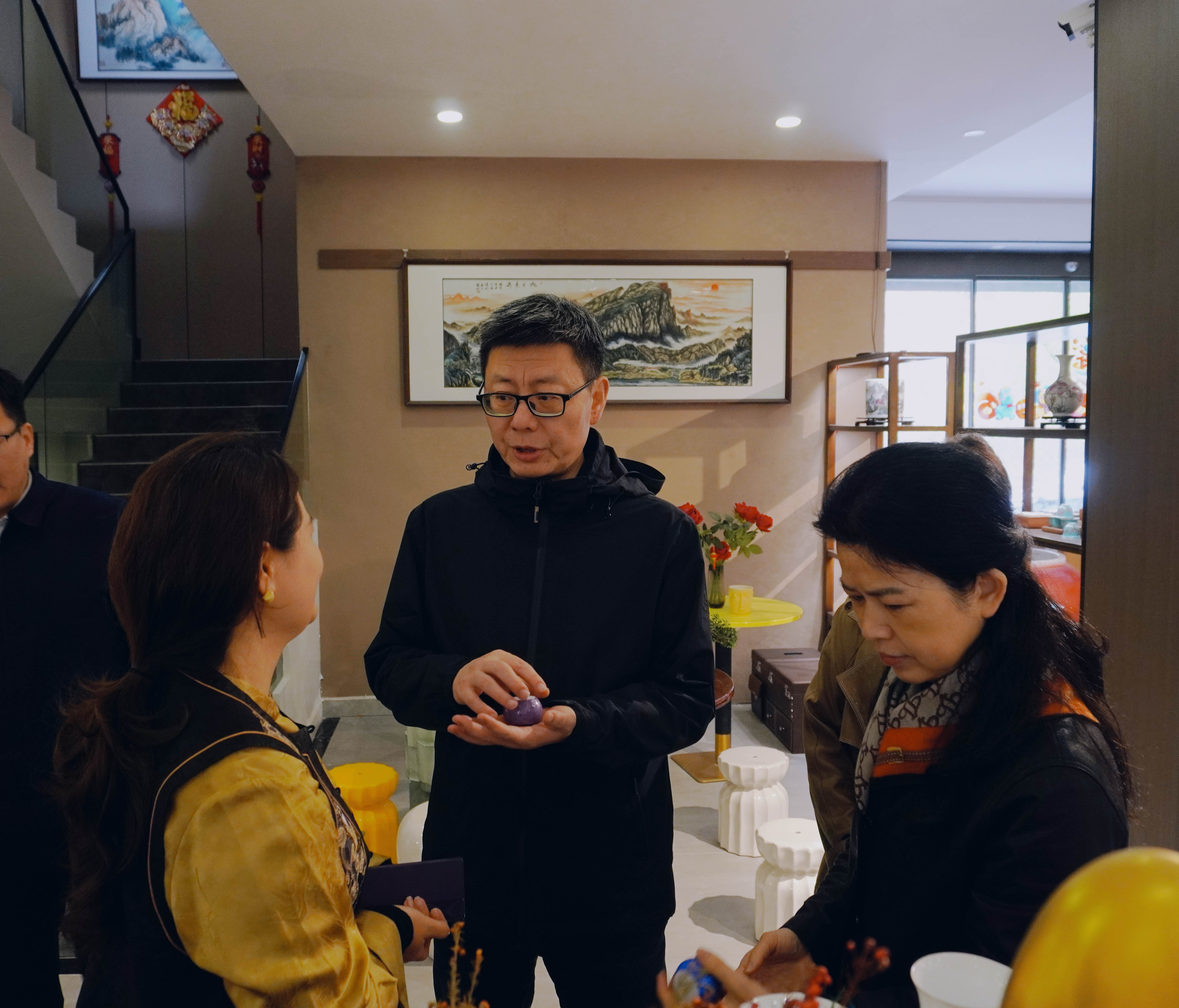 調(diào)研期間,羅文軍副市長一行先后深入產(chǎn)品展示區(qū)、生產(chǎn)車間及創(chuàng)意空間,實地察看企業(yè)運營情況、陶瓷產(chǎn)品研發(fā)及企業(yè)品牌建設情況。在產(chǎn)品展示區(qū),公司負責人圍繞國際奢牌長期合作信任、潮玩 IP 形象聯(lián)名等核心出口競爭力展開介紹,全面的展示了辰天陶瓷在全球化市場中的品牌影響力與行業(yè)地位。